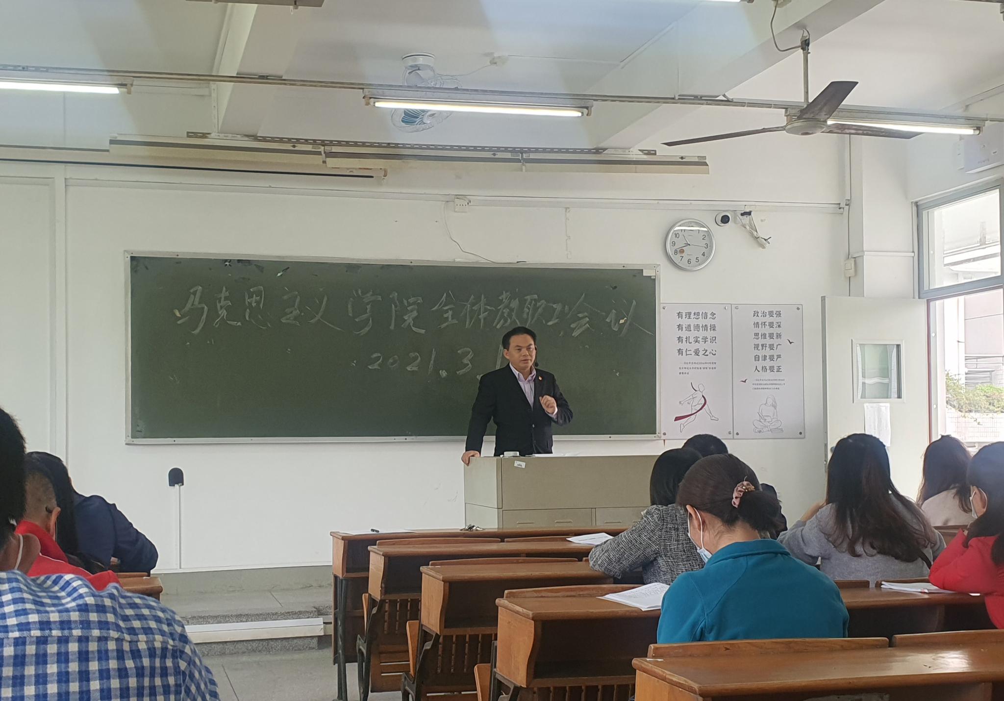 2021年3月1日上午,伟德国际英国在海珠校区教学楼804室召开本学期第一次教职工大会,全体教职工参会。会议由院长蔡立彬教授主持。
