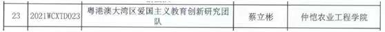 8月26日,广东省教育厅发布了《广东省教育厅关于公布2021年度普通高校重点科研平台和项目立项名单的通知》(粤教科函[2021]8号)。由我校伟德国际英国蔡立彬教授主持申报的“粤港澳大湾区爱国主义教育创新研究团队”,经学校推荐、省教育厅组织专家评审,获批为“广东省普通高校创新团队”。此次获批立项,是我校马克思主义理论学科“冲一流、补短板、强特色”建设工作取得的一项佳绩。
