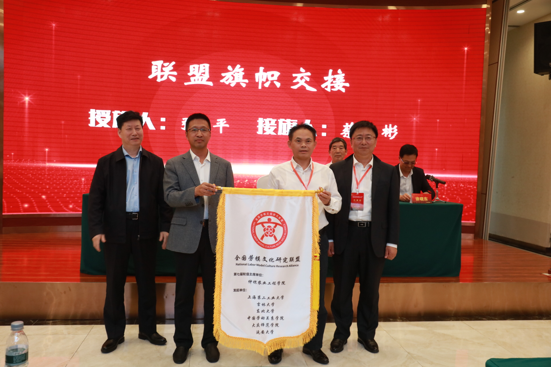我校是全国劳模文化研究联盟第七届轮值主席单位。在闭幕式上,中共中央党史和文献研究院原宣传教育局副局长薛庆超对本次论坛进行总结,并举行了全国劳模文化研究联盟轮值主席旗帜交接仪式。大庆师范学院党委委员、副校长张平,大庆油田原党委副书记、大庆师范学院特聘教授王昆,全国劳模文化研究联盟秘书长、上海第二工业大学伟德国际英国党委书记刘文向我校授“全国劳模文化研究联盟第七届轮值主席单位”旗帜。