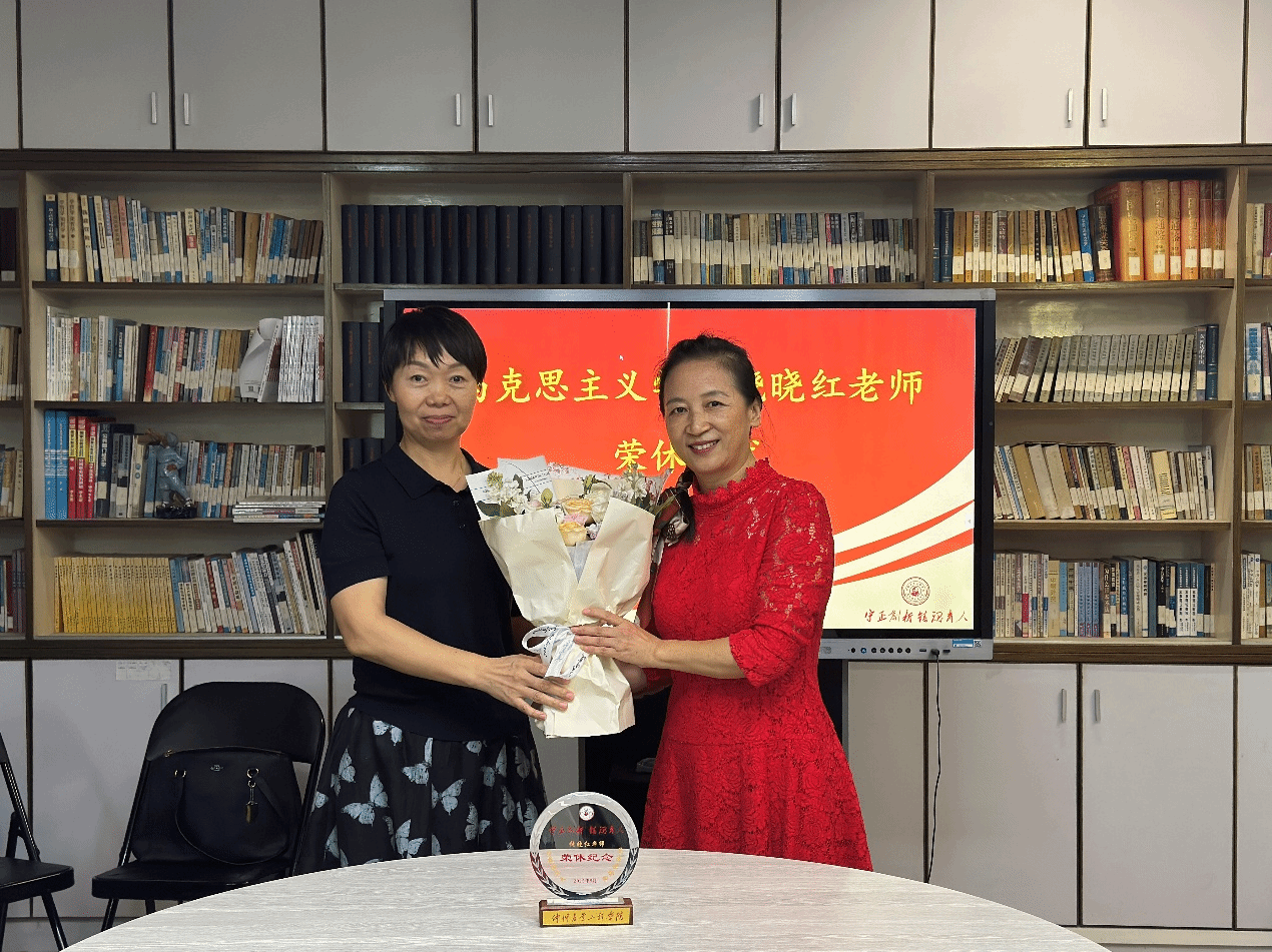饶晓红老师对学院领导的勉励和同事们的祝福致以诚挚谢意,并分享了自己长期从事马克思主义理论教育与科研工作的心得与收获。她勉励青年教师脚踏实地投身科研,深刻领会马克思主义唯物辩证法所蕴含的批判性与革命性精神,切实将其融入教学与研究的实践中。