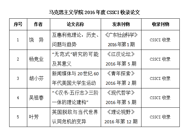 伟德国际英国2016年度CSSCI收录论文