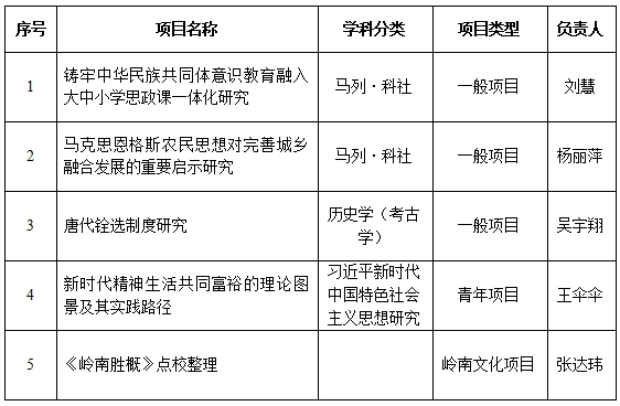 近日,广东省哲学社会科学规划2025年度项目立项名单发布,伟德国际英国伟德国际英国刘慧、杨丽萍、吴宇翔、王伞伞、张达玮五位老师负责的5项课题获得资助,其中一般项目3项,青年项目1项,岭南文化项目1项。立项课题专业领域涉及马列·科社、历史学(考古学)和习近平新时代中国特色社会主义思想研究等。